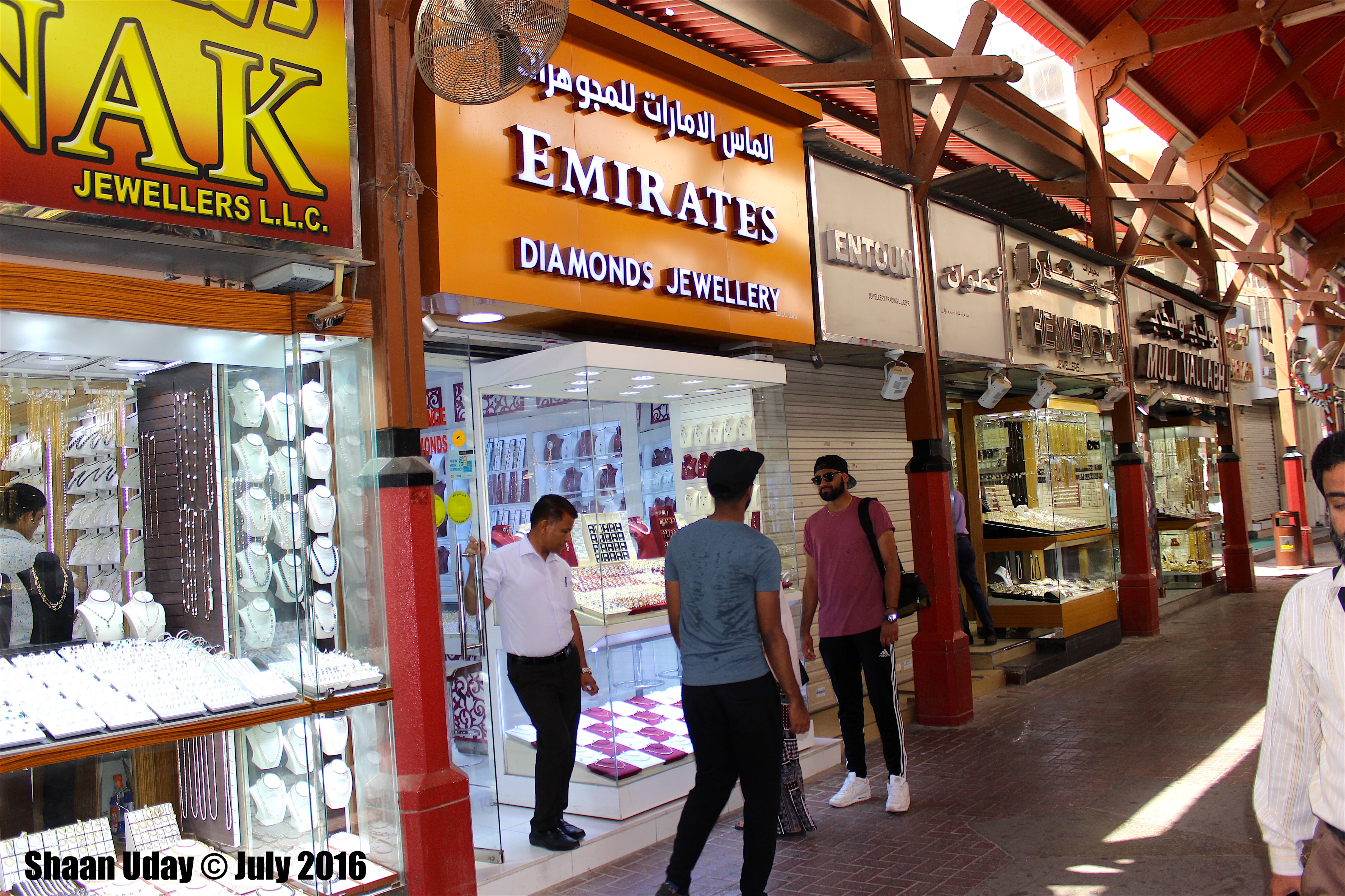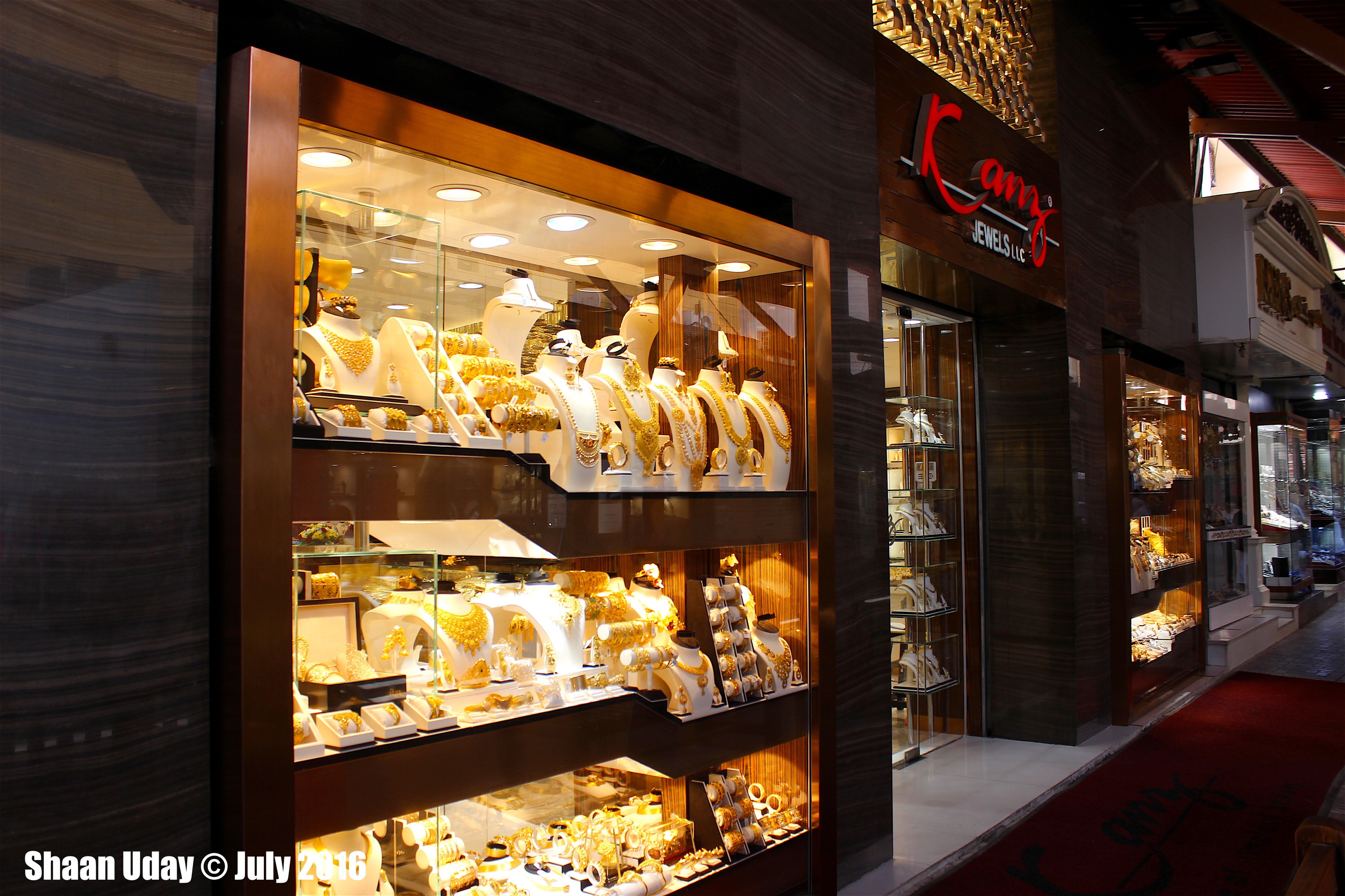 Gold Souk [Map] Gold Souk is a home for many independent retailers selling pure gold, silver, diamonds and many other valuable stones on a sheltered environment. The market is in a un-planned situation where complicated irregular paths took us to many corners in which it was difficult to find our way out. But it is a place for experience. I would say that though it was big, our aim was just to browse through all outlets and we managed to cover the entire souk in 30 minutes. For a person who is for gold could spend a day here like a child lost in the carnival. We visited during day time. I was told visiting in the evening after all the lights on, this place would be more shining with a shimmering gold reflections good for photographers. We didn't have any intention of buying any from here, where I was advised not to due to some outlets were notorious for selling fakes.