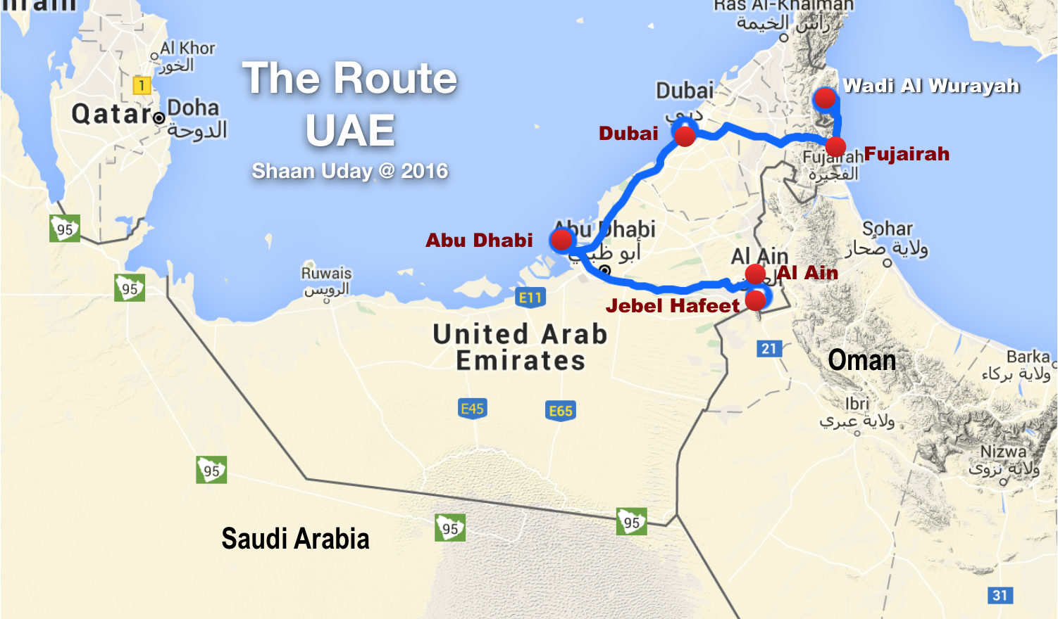 All our 10 days were spared starting in Dubai then moved on to Abu Dhabi, then to Al Ain slightly touching into the borders of Oman to Fujairah. Covering a total of 2000km on 60% of the highways of the UAE. UAE’s seven independent monarchs, Abu Dhabi, Dubai, Sharjah, Ajman, Ras al-Khaimah, Umm Al-Quwain, and Fujairah are governed by an independent absolute monarch and a jointly formed Federal Supreme Council rules the entire UAE as one country where Abu Dhabi serves the Capital. And it is the second largest city, next to Dubai As it is in Europe, this allows a free-to-move in any part of the UAE for any citizen, expatriates, and tourists without going through any border control formalities. Geographically, some kingdoms are scattered amongst many other kingdoms. Also, there is an area that belongs to Oman is located in the middle of Fujairah. Mainly all cities of the Kingdoms concentrating on the north-west of the land facing Persian gulf while Fujairah is the only kingdom is enjoying the west coast of the land and facing the Gulf of Oman.